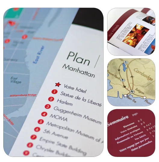 Passionnés par les voyages, Arnaud et François ont transformé leur imprimerie pour proposer des «road books» personnalisés aux clients des voyagistes. La qualité éditoriale des road books est basée sur la base documentaire très riche constituée au fil des ans : quelques pages d’introduction sur le pays et les pépites touristiques qui jalonnent leur parcours ainsi qu’une description complète des établissements de séjour, les voyageurs peuvent partir à l’aventure en toute tranquillité.